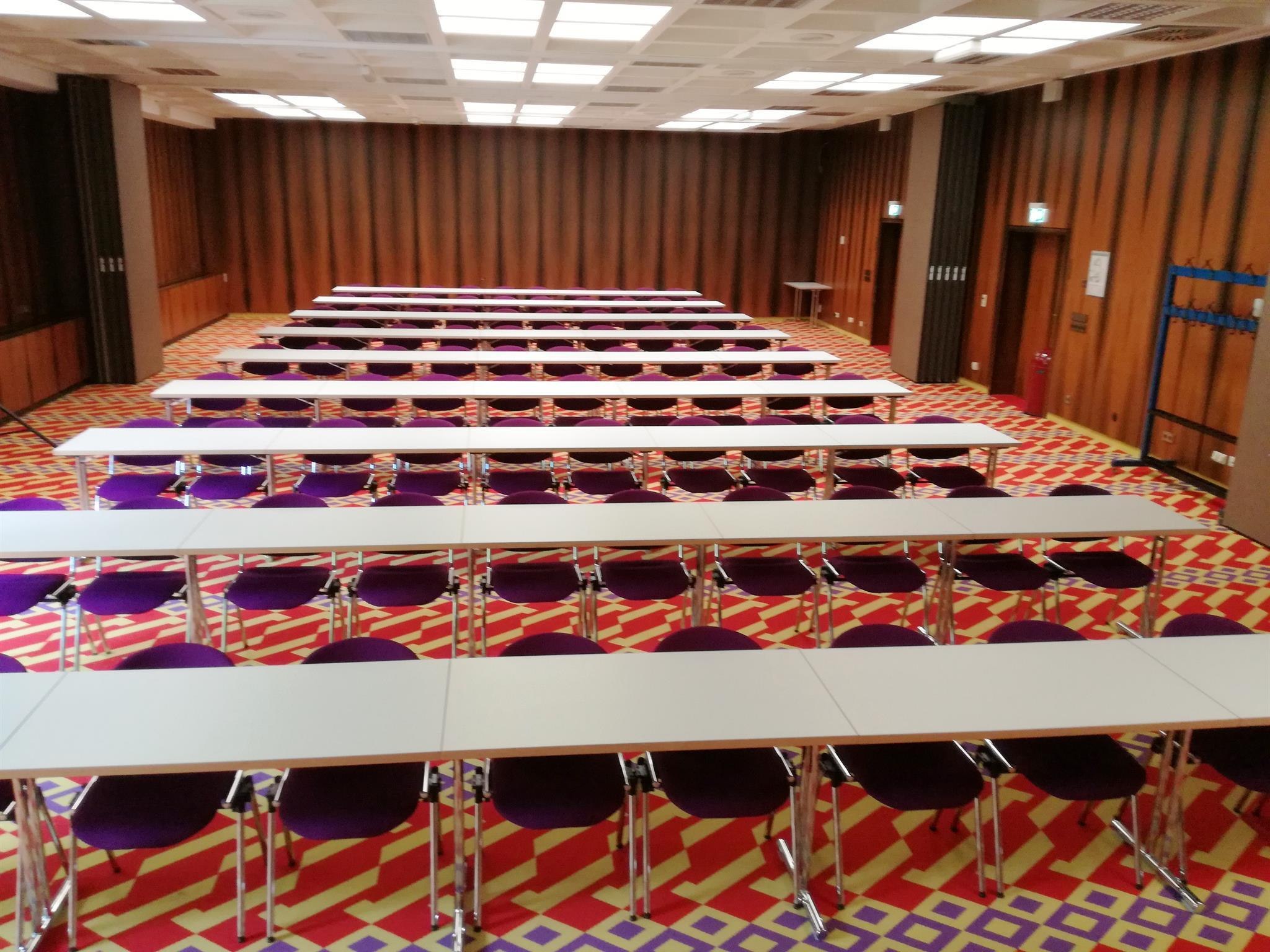 All rooms are ventilated, the large and small halls, as well as the three conference rooms, are additionally air-conditioned. The halls and conference rooms can be darkened and are equipped for film presentations. All conference rooms are provided with sufficient power supply of 16 amperes as well as telephone connection.