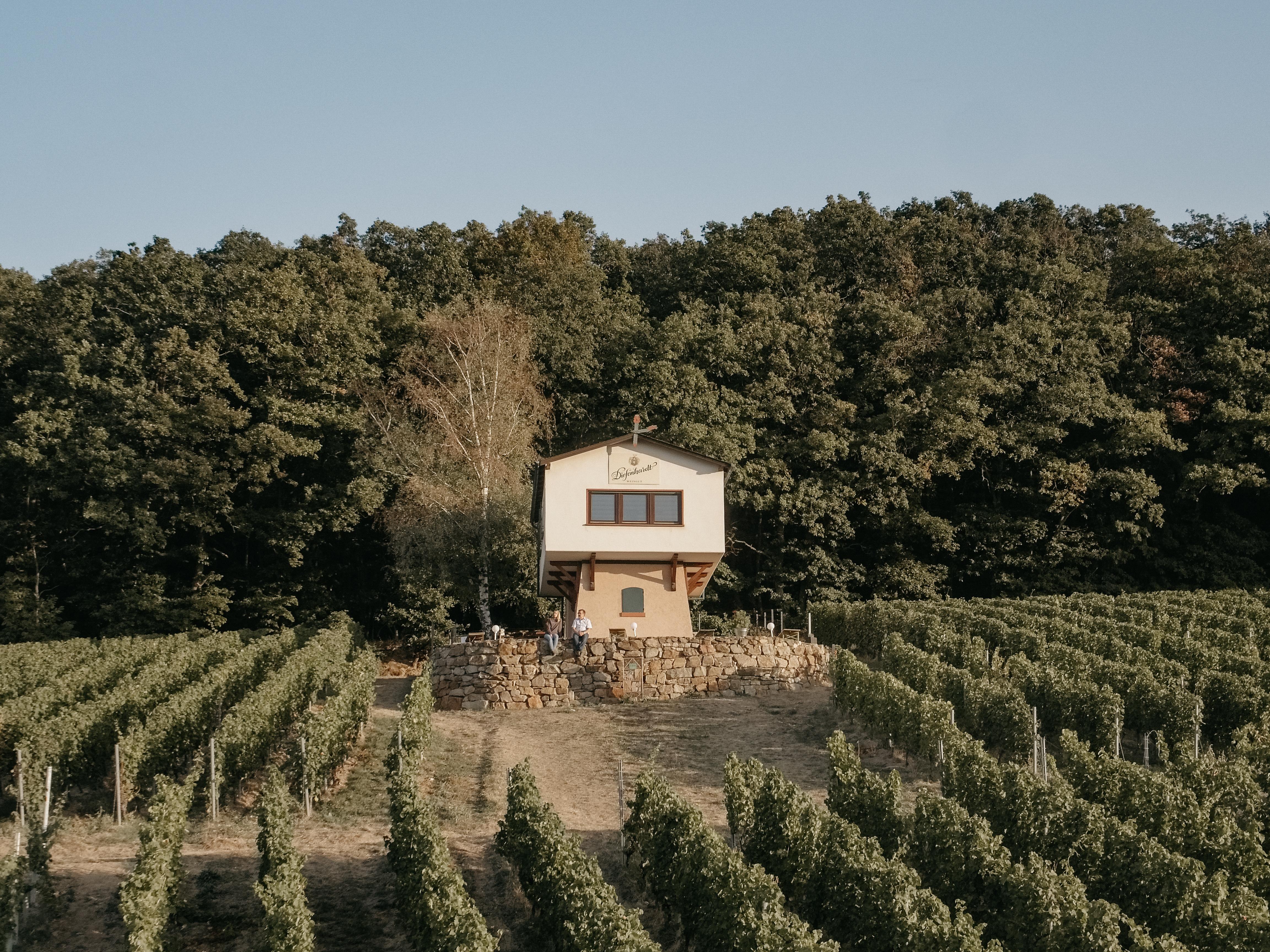 In the middle of the Rheingau - surrounded by vineyards on the hillside - stands the Diefenhardt vineyard house. Clearly visible from afar, it draws attention to itself. It has always been owned by our winery and served the former owner Baron von Reichenau as a hunting lodge. Today, it is a place for sociability, enjoyment, and pure nature. As the centerpiece of our winery, it now also adorns our label.