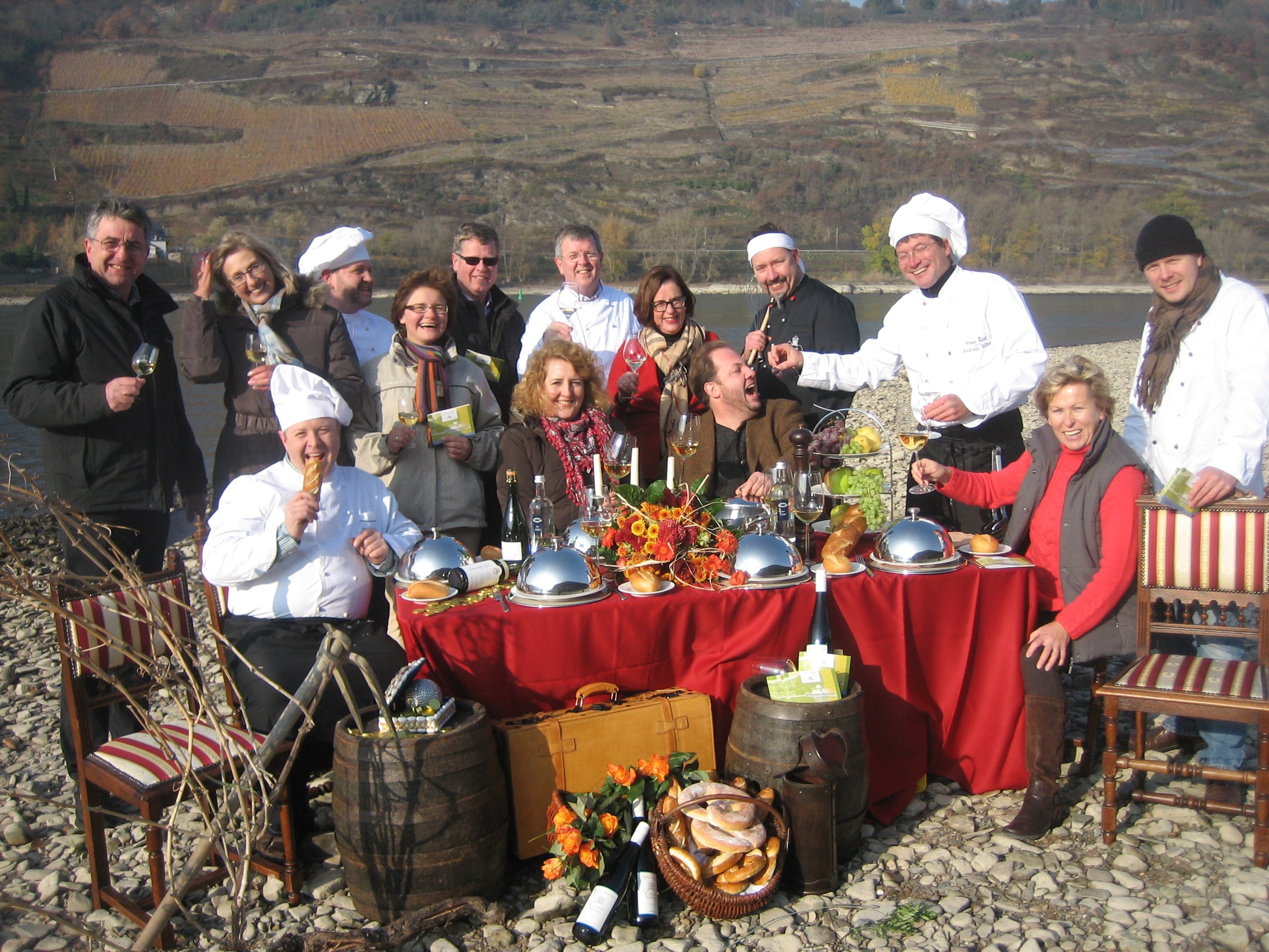 The annual highlight is a joint event in summer involving all or at least most of our chefs and wine makers. More than ten courses and an open wine bar, all presented in a unique setting. Past events included tours in an oldtimer bus, dinners in castles and on board the Goethe steamboat. Our 25th anniversary event was supposed to take place on board the MS Loreley Star on July 10, 2020. Due to the corona pandemic, this dinner cruise through the valley of the Loreley had to be canceled. The replacement event in 2021 had to be canceled, as well. We now work on creating an interesting event for 2022. Stay tuned for more information.